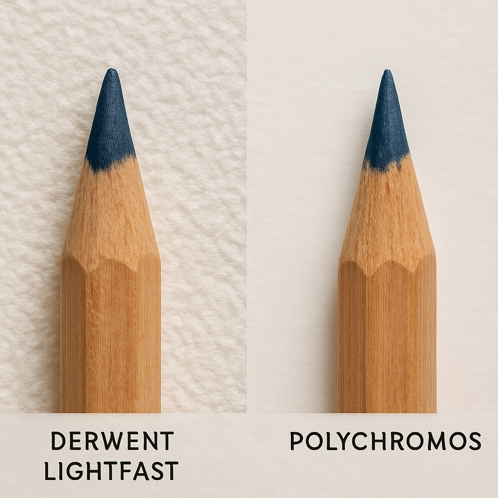 Beyond lightfastness, think about how the pencils feel on paper. A higher oil content gives Polychromos a silky glide, but if you’re working on heavy rag‑paper, the waxy base of Derwent Lightfast can cling better, preventing smears when you lift the tip.