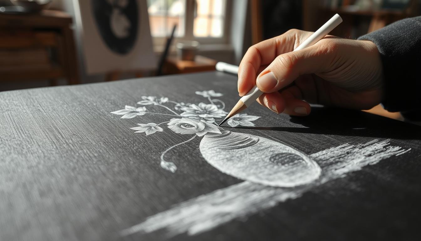 Mastering pressure is essential for this technique. Light pressure creates subtle mid-tones while firm pressure produces bright highlights. You’ll develop a sensitive hand since you can’t switch tool grades.